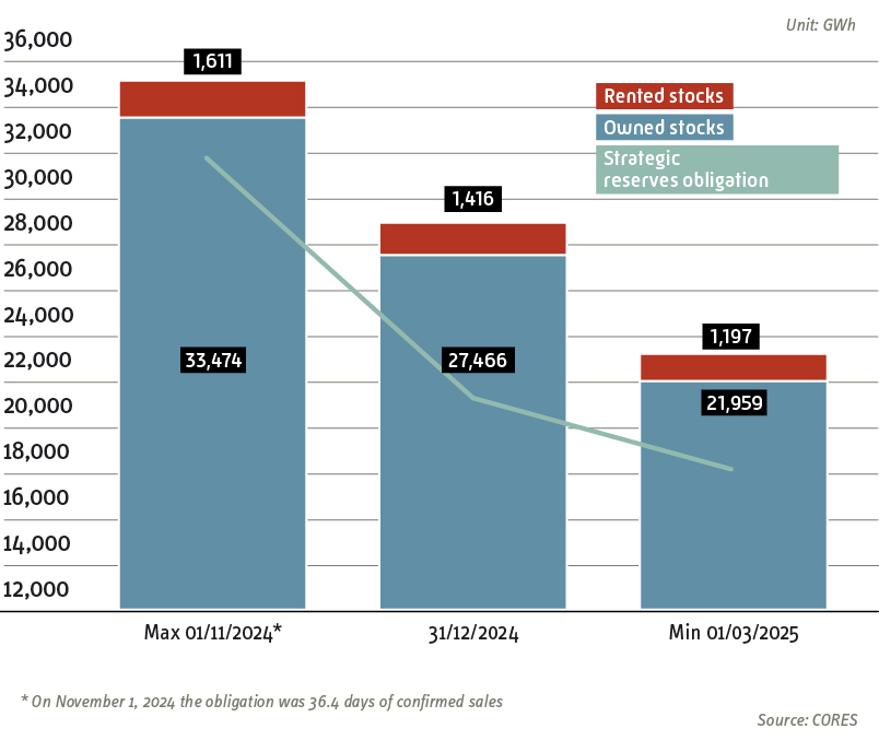 - 10 days of strategic stocks, maintained in underground storage at all times. The calculation is made annually, once the supply year has ended, and is applicable during the period between 1st April and 31st March of the following year.
