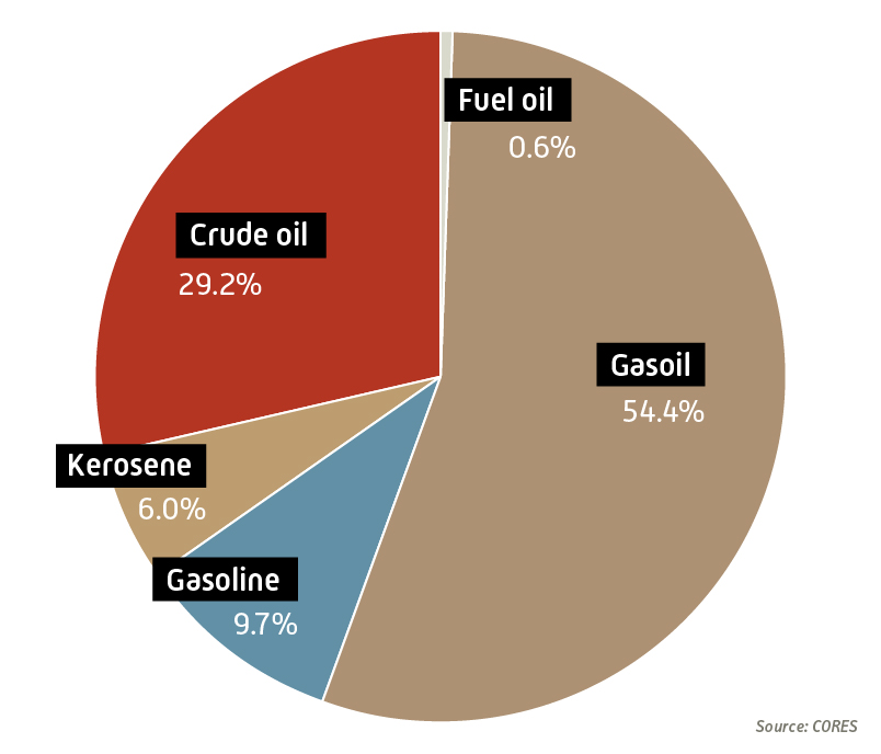 The strategic stocks are composed of the groups of products that constitute the obligation (gasolines, middle distillates and fuel oils), as well as a significant amount maintained in the form of crude oil. Gasoil represent almost half of strategic stocks.