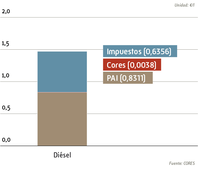 La cuota de CORES supone una parte mínima dentro de la composición del PVP de los productos petrolíferos